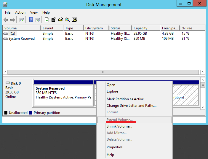 Через CMD переходим в каталог с установленным VirtualBox(команда "cd") или указываем расположение VBoxManage.exe непосредственно в команде изменения размера: C:\Program Files (x86)\VirtualBox\VBoxManage.exe modifyhd D:\Host1.vdi --resize 30000 По моим наблюдениям объем виртуального диска меняется на лету. После изменения размера динамического диска необходимо зайти в оснастку операционной системы "Управление дисками"(Disk Managment) и выполнить команду "Расширить том"(Extend Volume) |